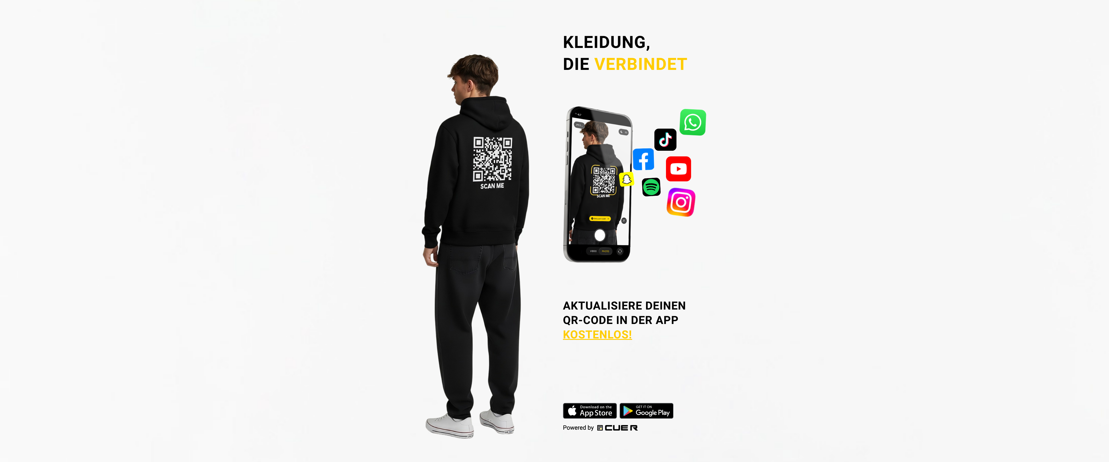 Deshalb haben wir eine neue Art, Leute miteinander zu verbinden, geschaffen. Wir haben die Idee realisiert, QR-Codes mit hochwertiger Kleidung zu kombinieren, um es den Menschen zu erleichtern, neue Kontakte zu knüpfen, sei es auf Dating-, Geschäfts- oder Freundschaftsebene.