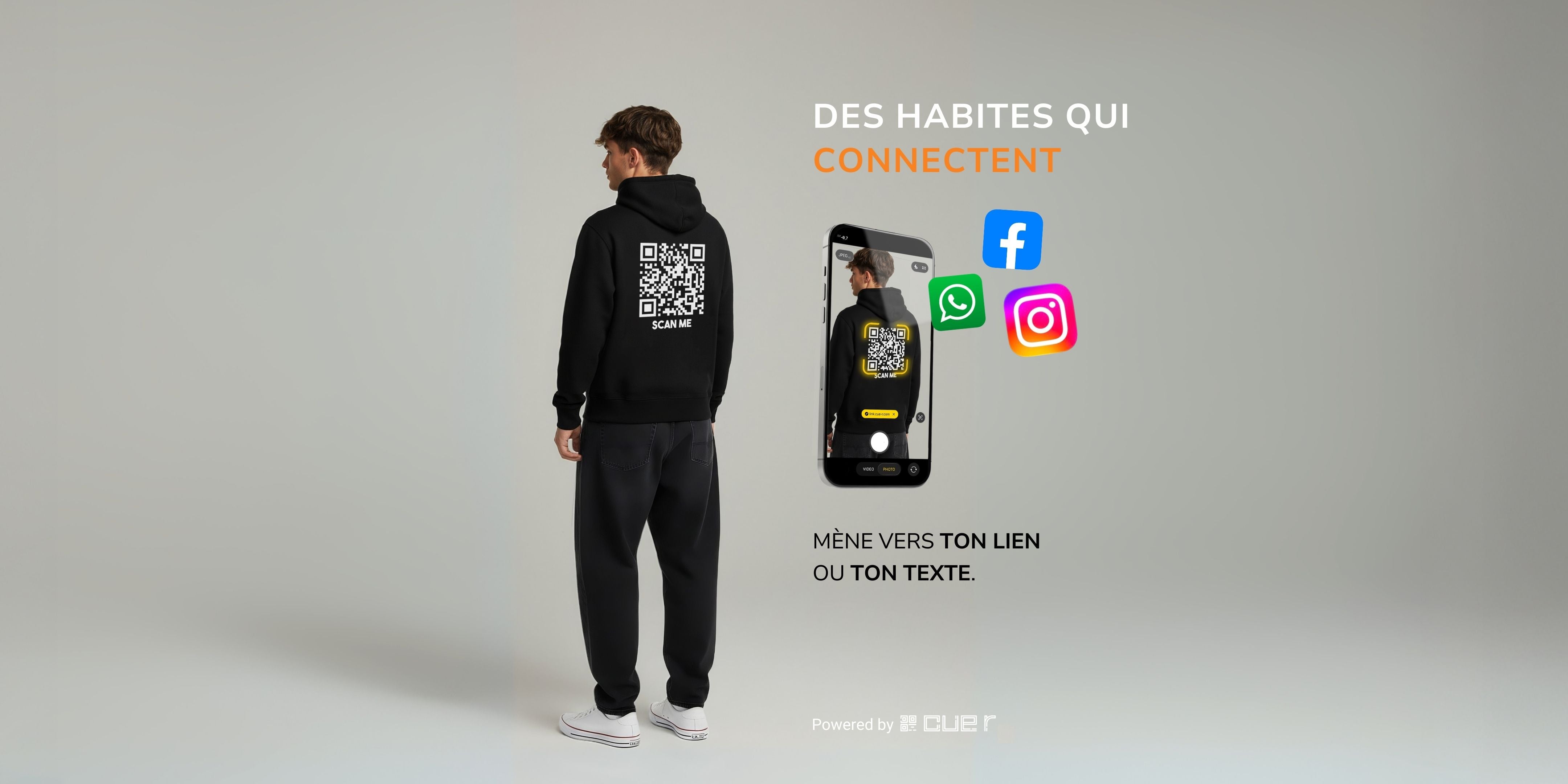 C’est pour ça qu’on a imaginé une nouvelle façon de connecter les gens : associer des QR codes à des vêtements de qualité pour te permettre de créer facilement de nouveaux contacts, que ce soit pour faire des rencontres, élargir ton réseau pro ou te faire de nouveaux amis.
