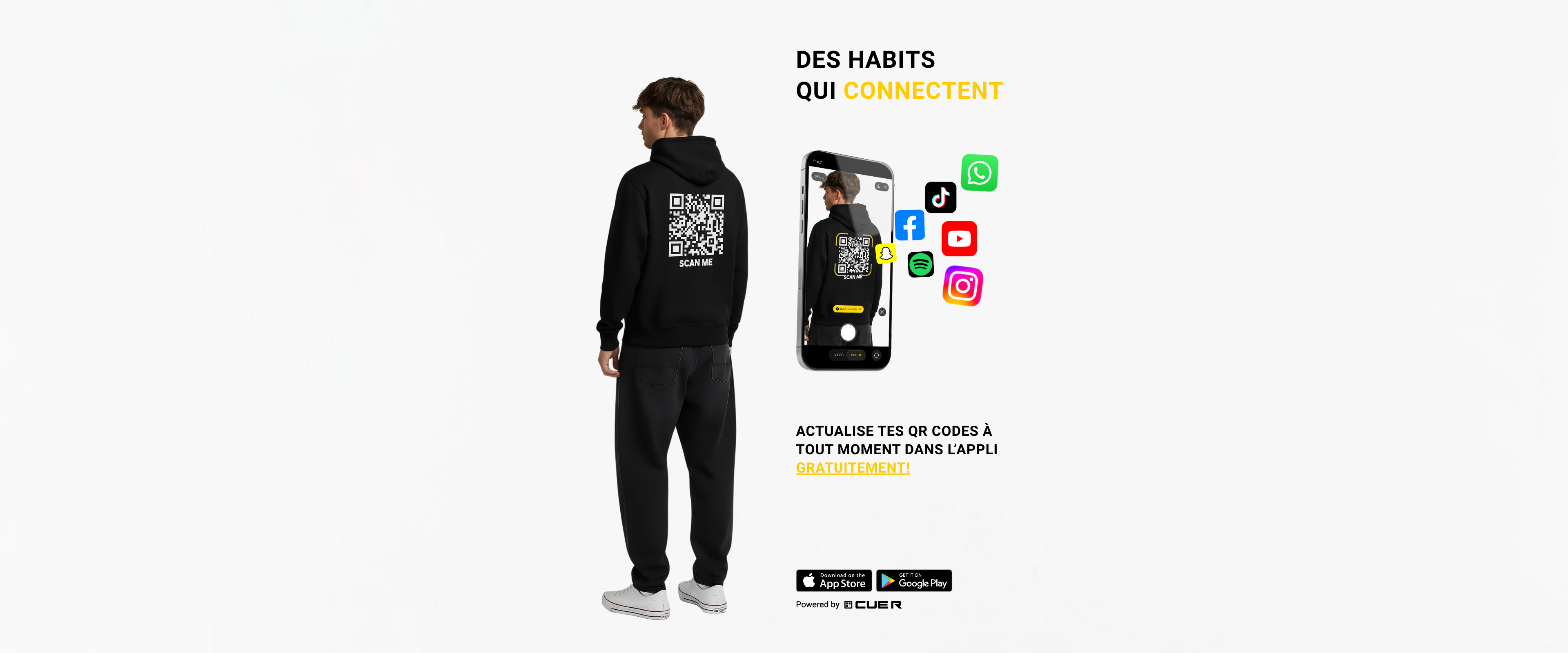 C’est pour ça qu’on a imaginé une nouvelle façon de connecter les gens : associer des QR codes à des vêtements de qualité pour te permettre de créer facilement de nouveaux contacts, que ce soit pour faire des rencontres, élargir ton réseau pro ou te faire de nouveaux amis.